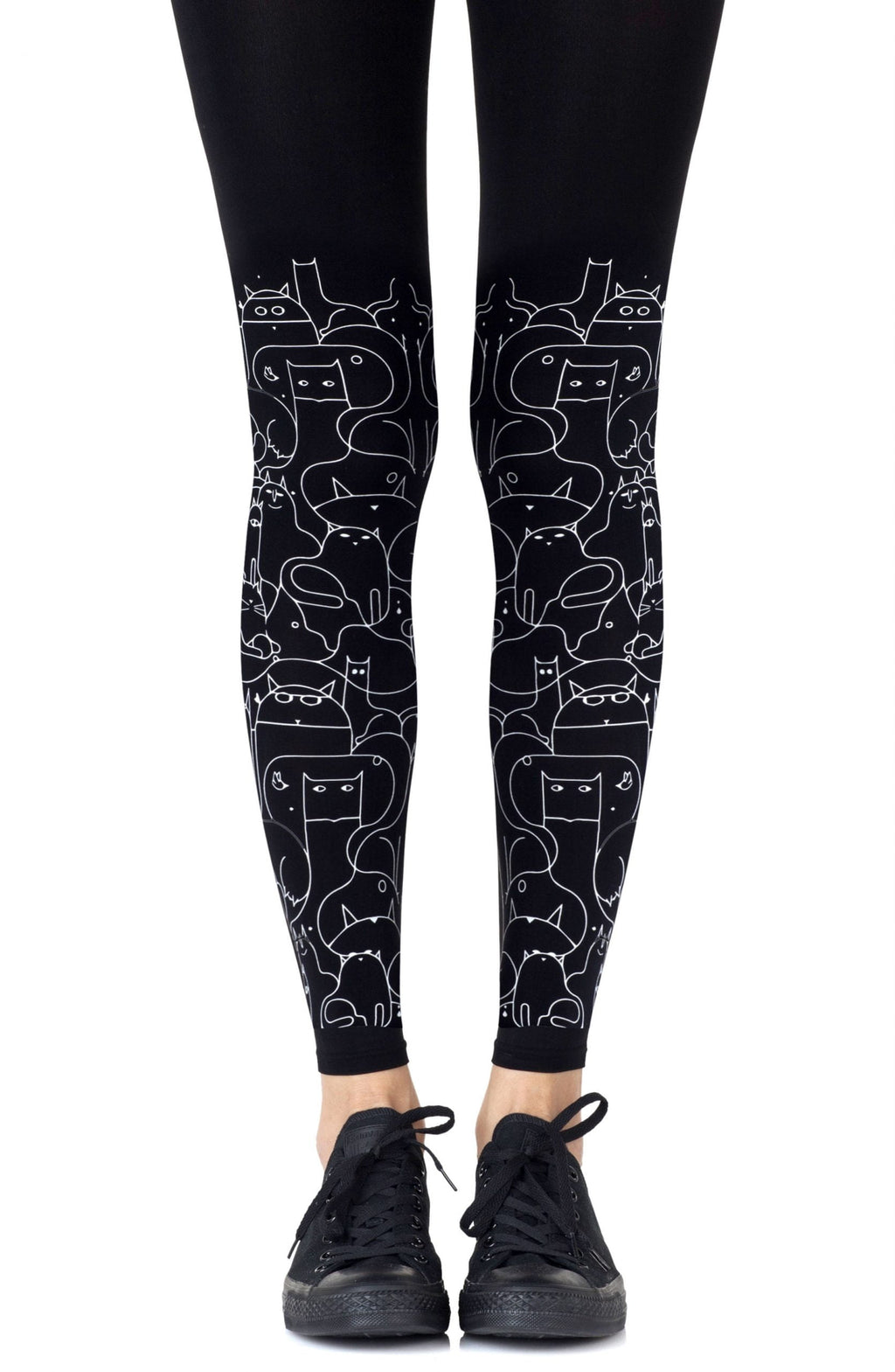 Be a proud feline lover with Cat Lady tights that feature an allover cat illustration and make your legs look ferocious. Colour: Black tights with Light Grey print. Thickness: 120 denier. Your entire leg will be getting Zohara love with allover prints. Both sides are not created equal with allover tights so please look at the foot of the tights before wearing to ensure you don't step on the print. (The front print will be lower than the back.) Tights that end at your angle and set your feet free. Unless they have X-ray vision no one will be able to see through these opaque tights. Hand print no two are the same.