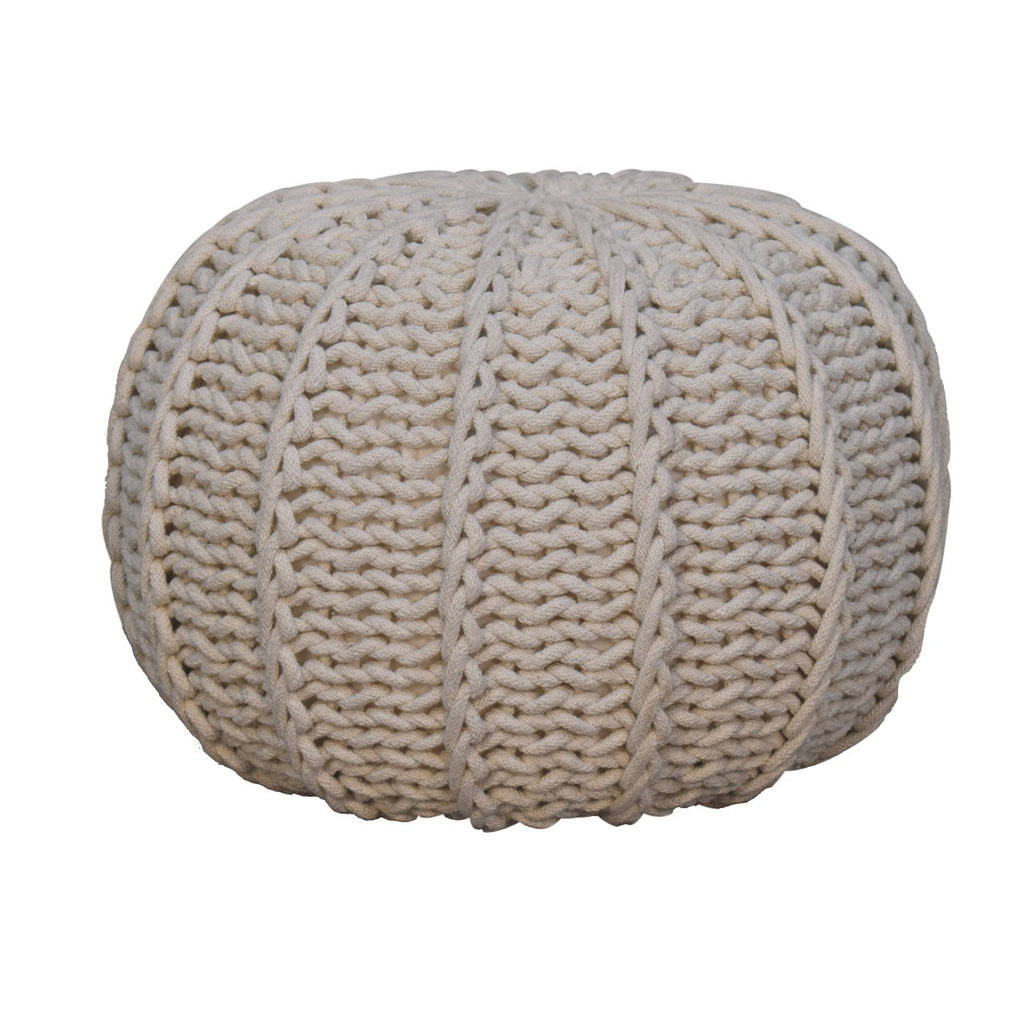 If you are looking for a boho accent to liven up your interior, this endearing knitted round pouffe is a perfect match. Featuring a thick weave in a versatile shade of cream, it can serve as a footstool, a piece to sit on or simply as a decorative accessory to your living room. Get creative with mixing colours to make an ideal composition for your surroundings, and enjoy its charming modern bohemian vibe..This product is handcrafted individually and as every piece is unique please do expect variations in finish, texture, size and should not be considered as a defect.
