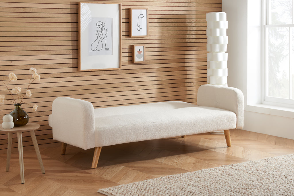 Add a stylish edge to your home with the modern Micah sofa bed. Crafted with both style and functionality in mind the Micah sofa bed is made with a luscious neutral teddy bear boucle fabric.